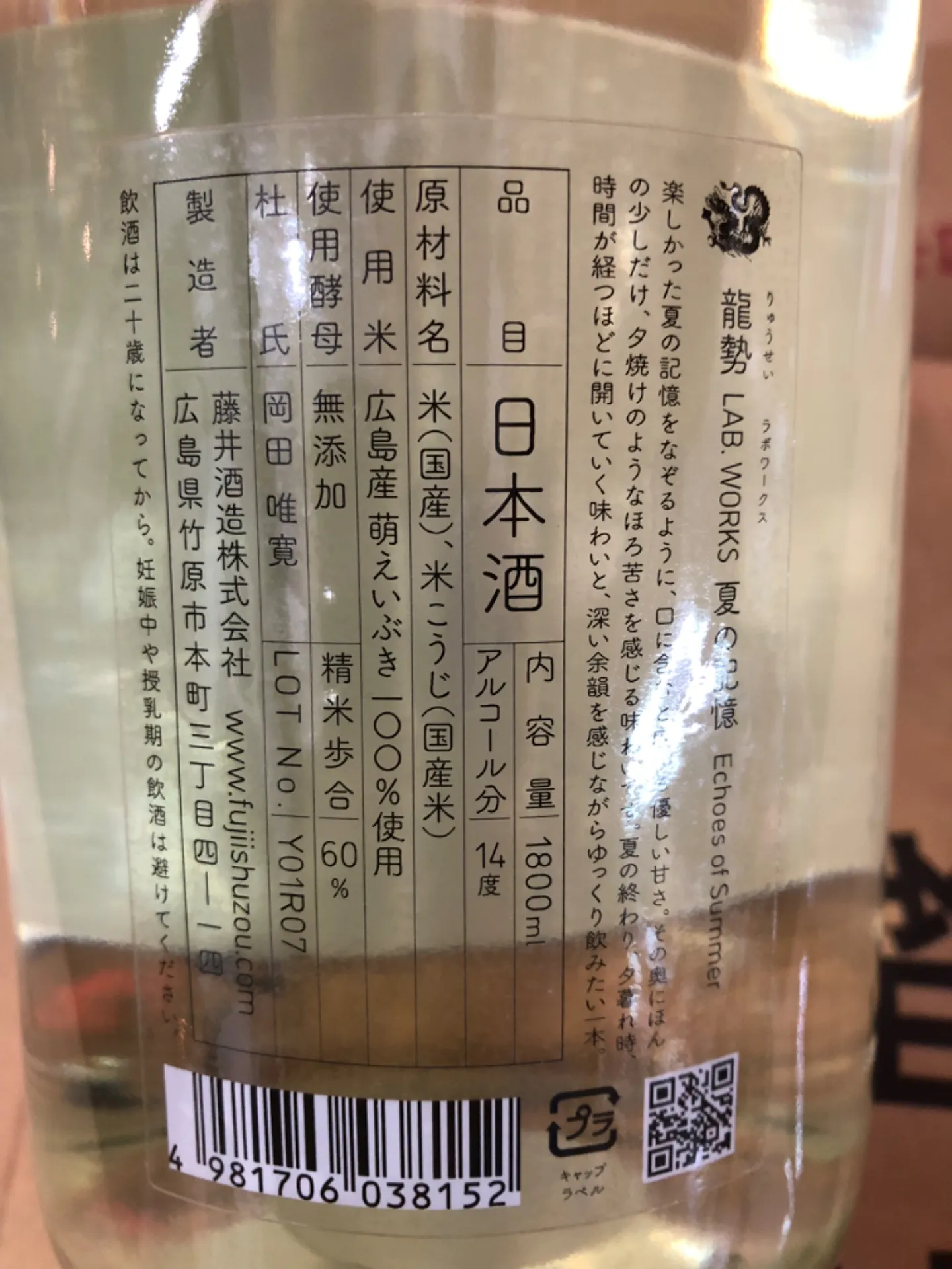 広島県 藤井酒造 龍勢 夏の記憶 Echoes of Summer 1800ml