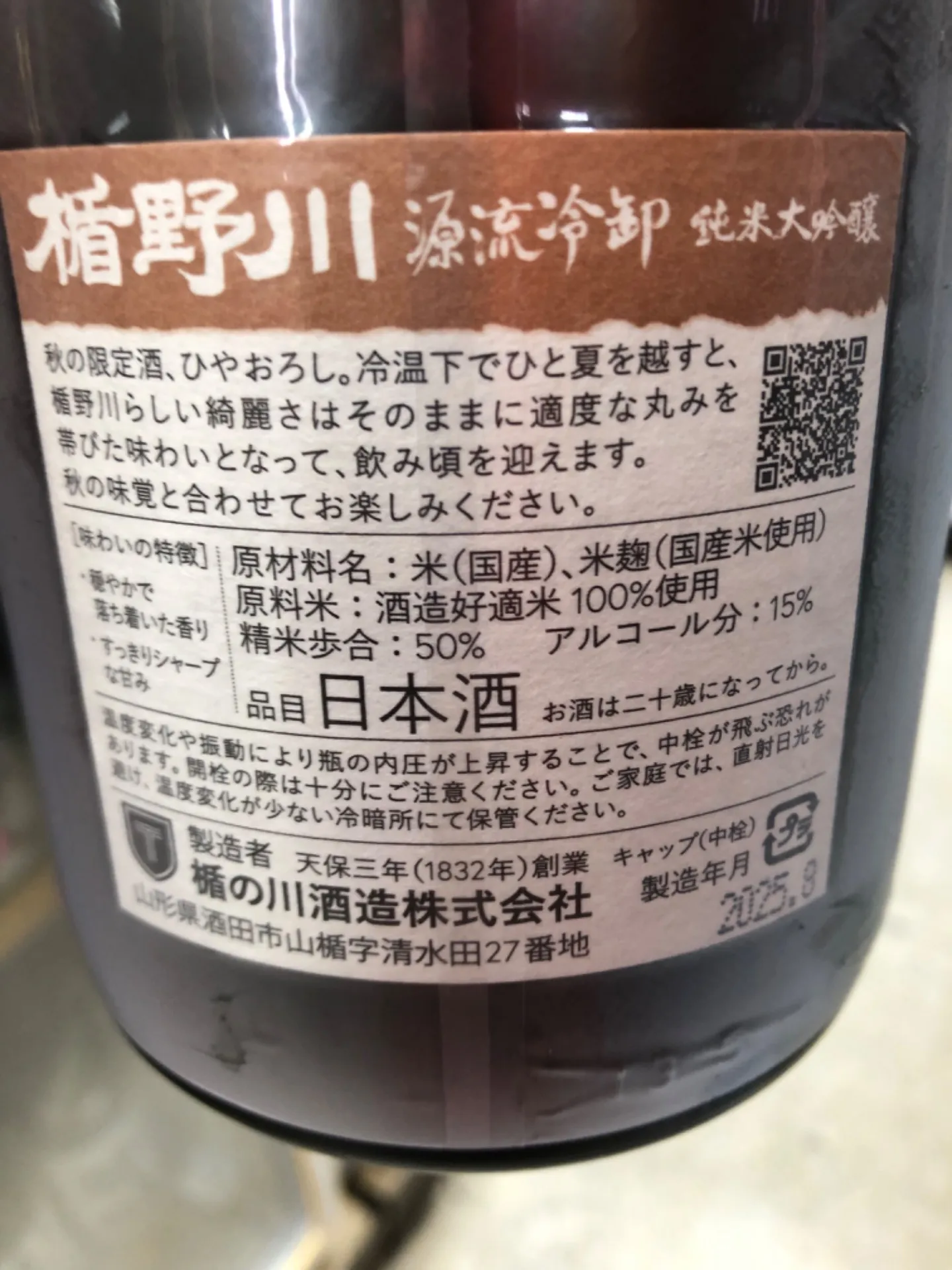 毎年秋季に数量限定で出荷される「楯野川」の冷卸です。