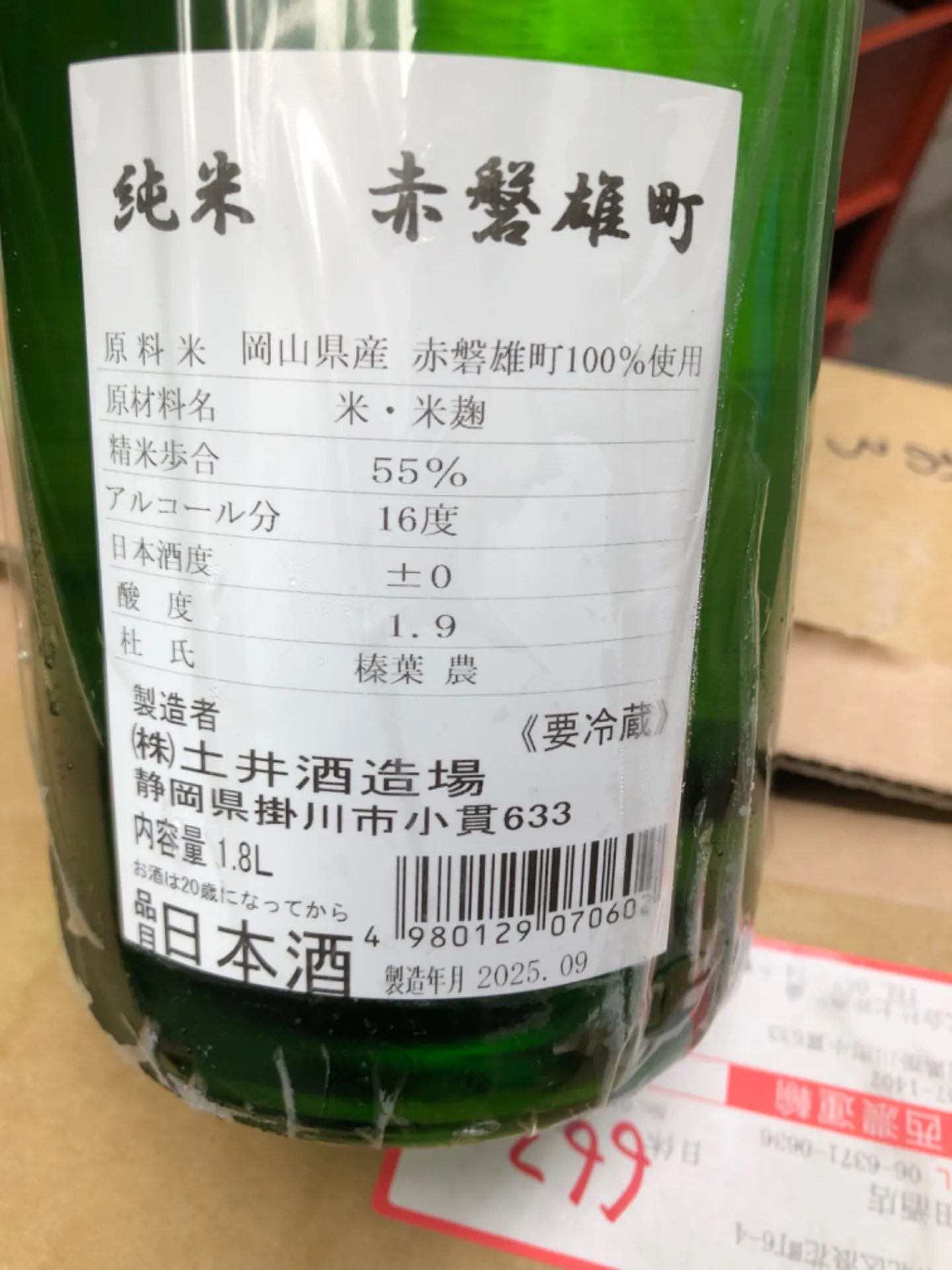 静岡県 土井酒造 開運 純米 赤磐雄町 1800ml