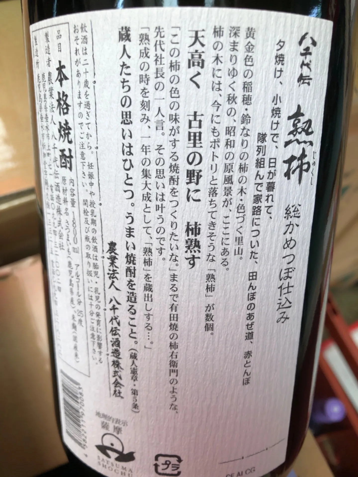 「この熟柿の色の味がする焼酎を造りたい。」という先代社長の夢を形にした、八千代伝酒造の季節限定芋焼酎です。
