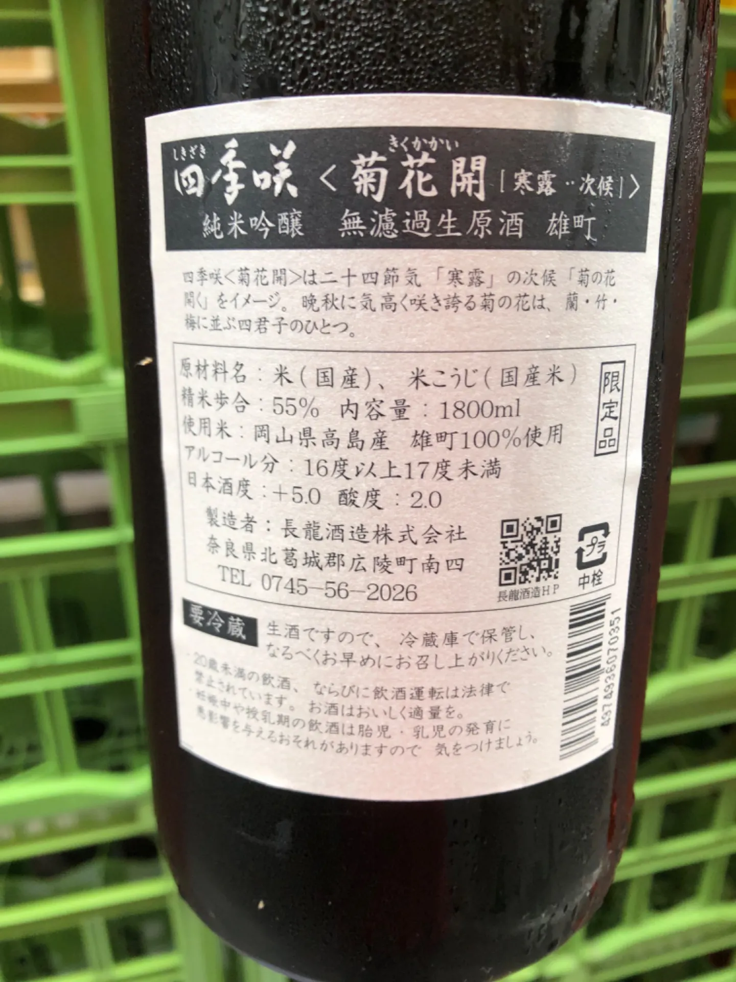 奈良県 長龍酒造 四季咲 菊花開 純米吟醸 無濾過生原酒 雄町 1800ml
