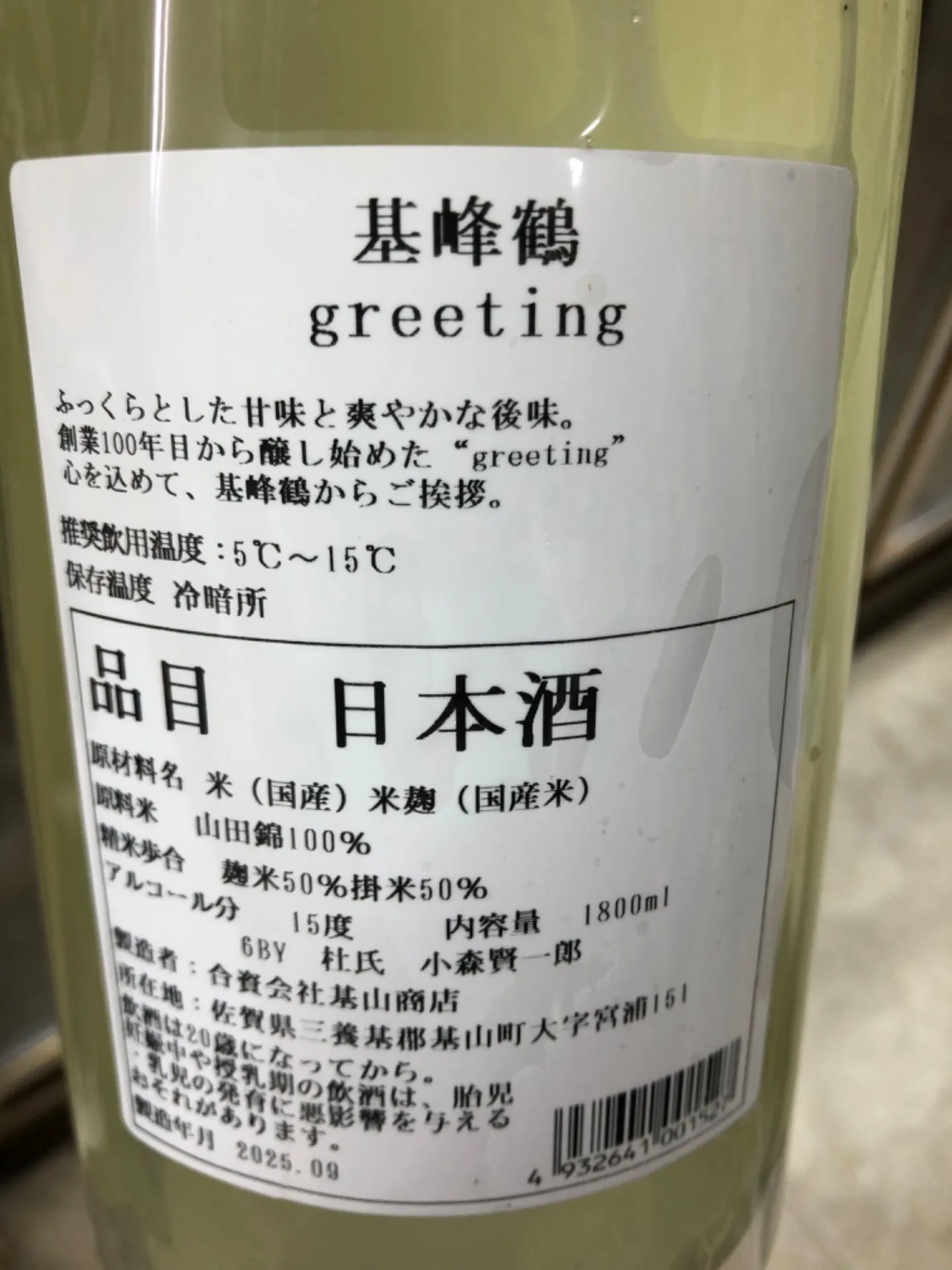 佐賀県 基山商店 基峰鶴 greeting 1800ml