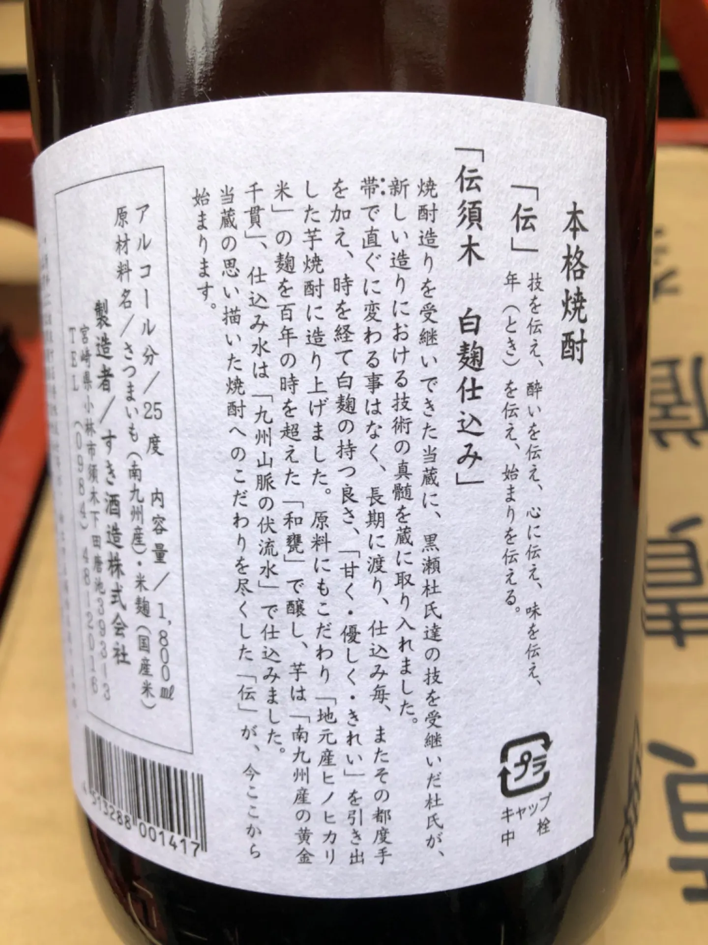 宮崎県県 すき酒造 伝須木白麹仕込 芋焼酎25度 1800ml
