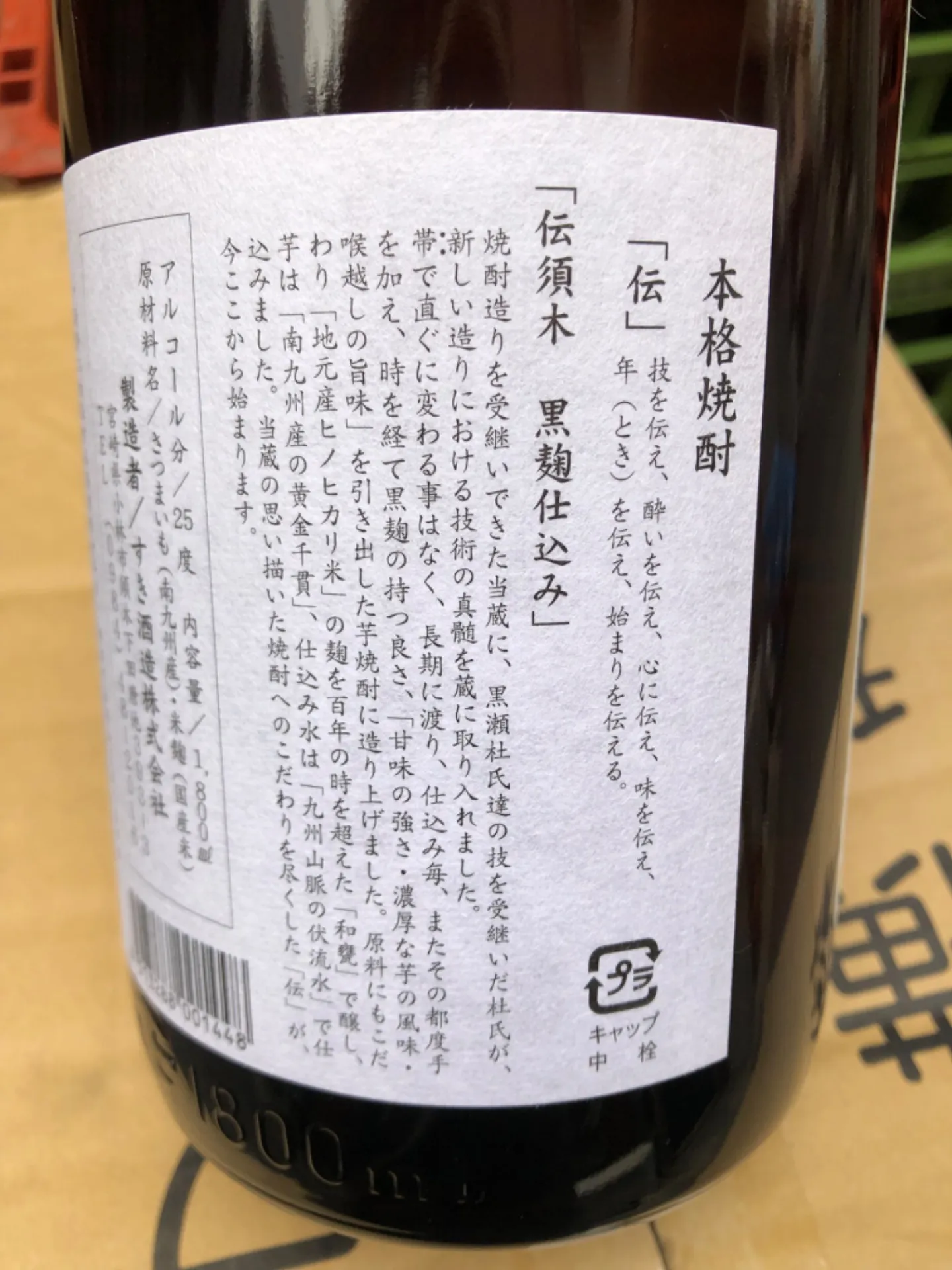 宮崎県県 すき酒造 伝須木黒麹仕込 芋焼酎25度 1800ml