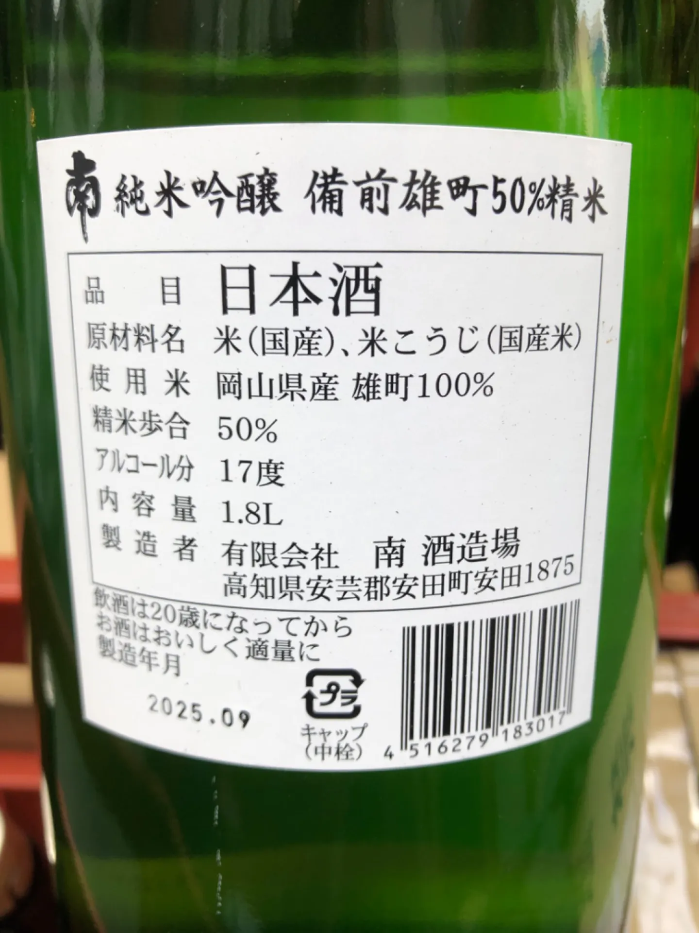 「雄町」の持つ力強さの中に南らしい”キレと辛口”を備えた1本です!