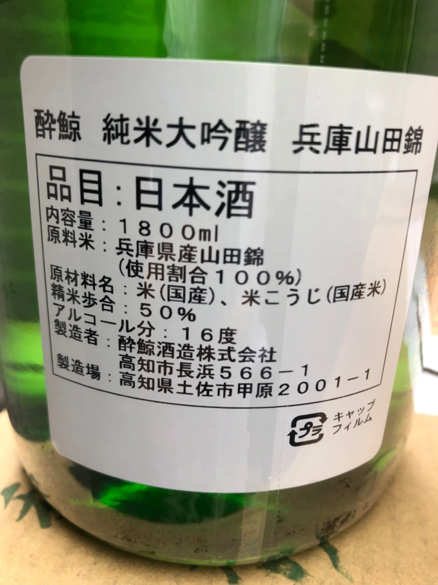 高知県 酔鯨酒造 酔鯨 純米大吟醸 山田錦 1800ml