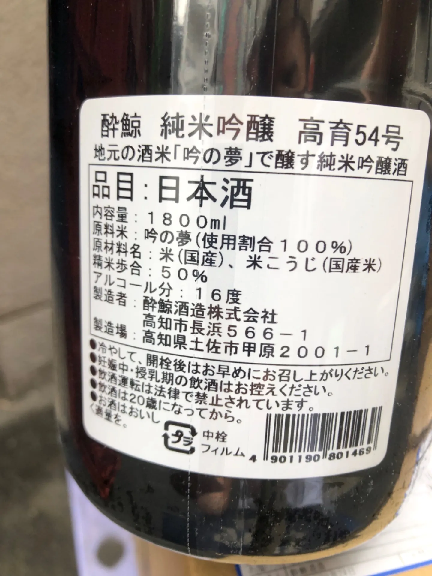 高知県 酔鯨酒造 酔鯨 高育 純米吟醸 1800ml