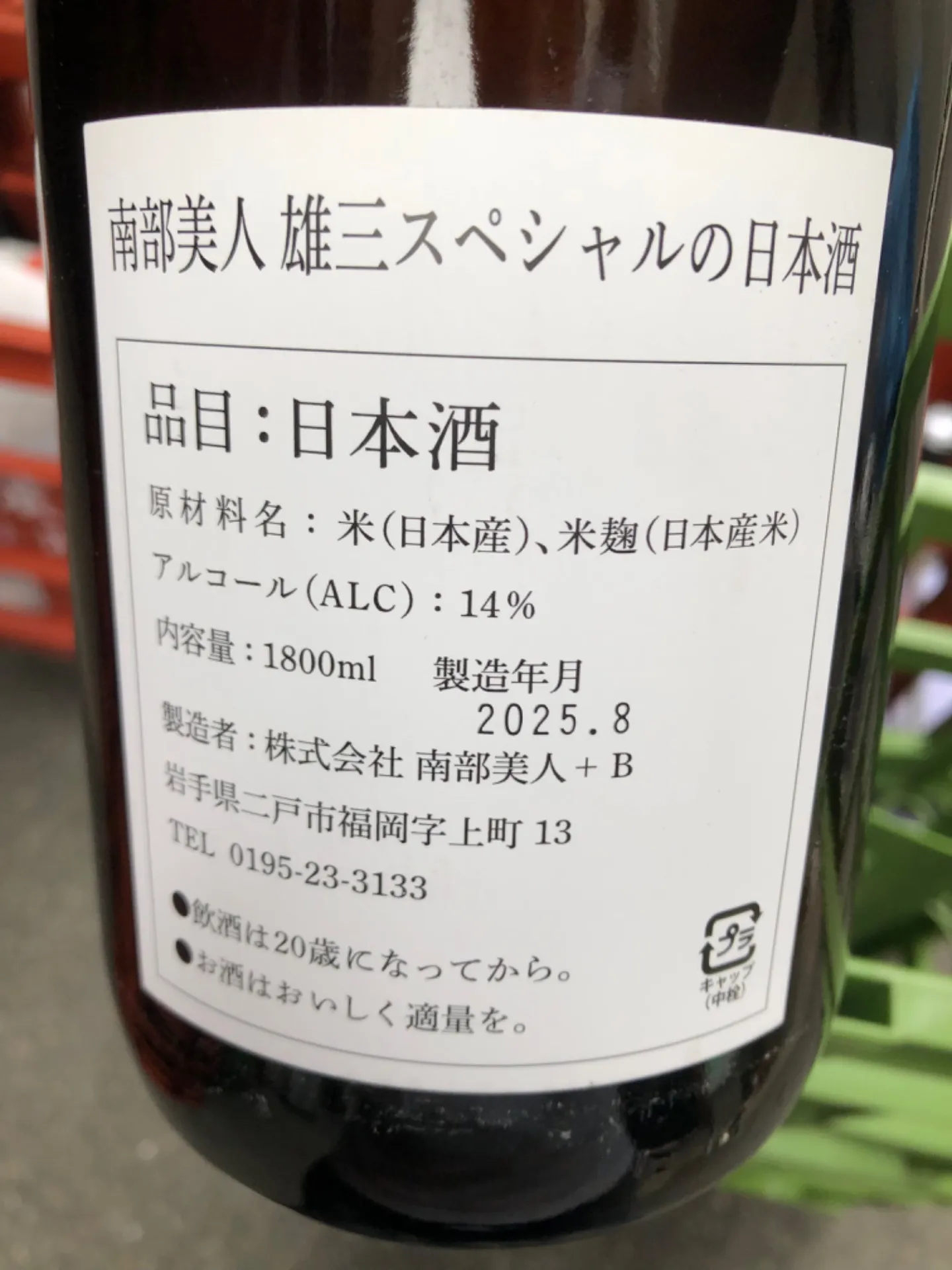 岩手県(株)南部美人+B 南部美人 雄三スペシャルの日本酒 番外品 1800ml
