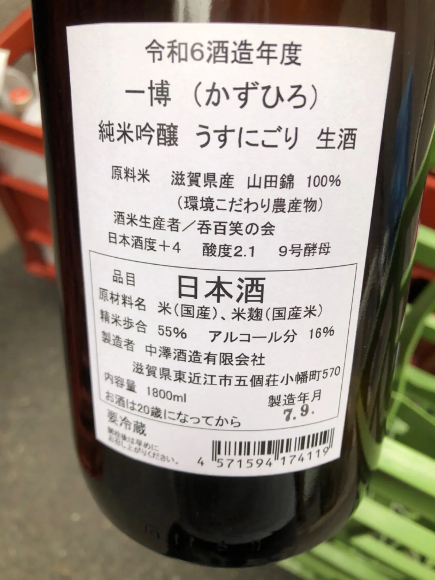 滋賀県 中澤酒造 一博 純米吟醸 うすにごり 生酒 1800ml