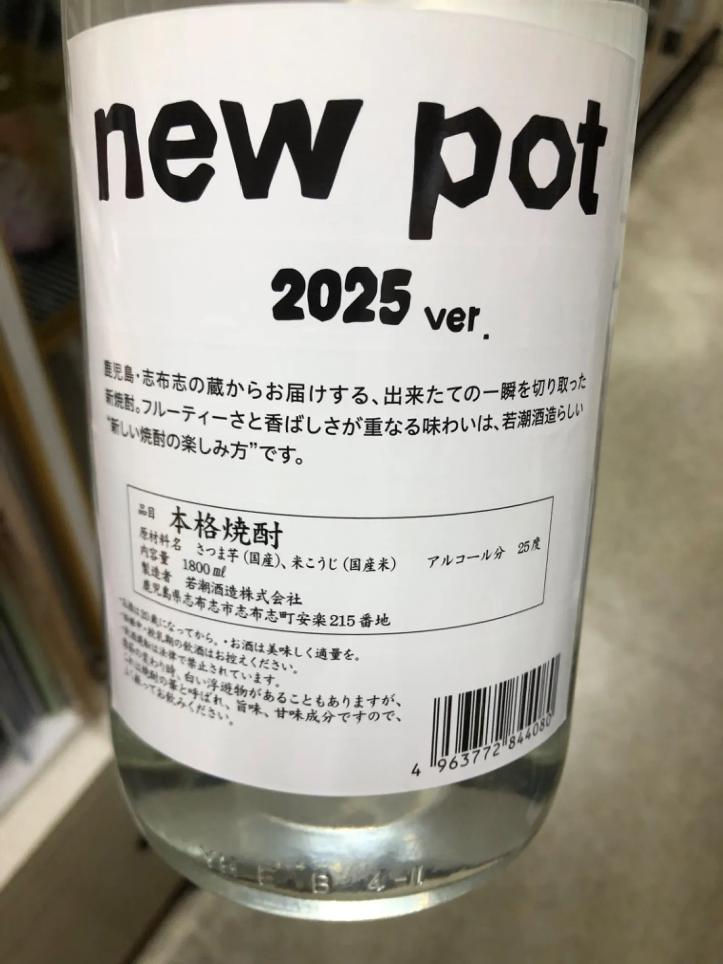鹿児島県 若潮酒造 new pot 2025 芋焼酎25度 1800ml