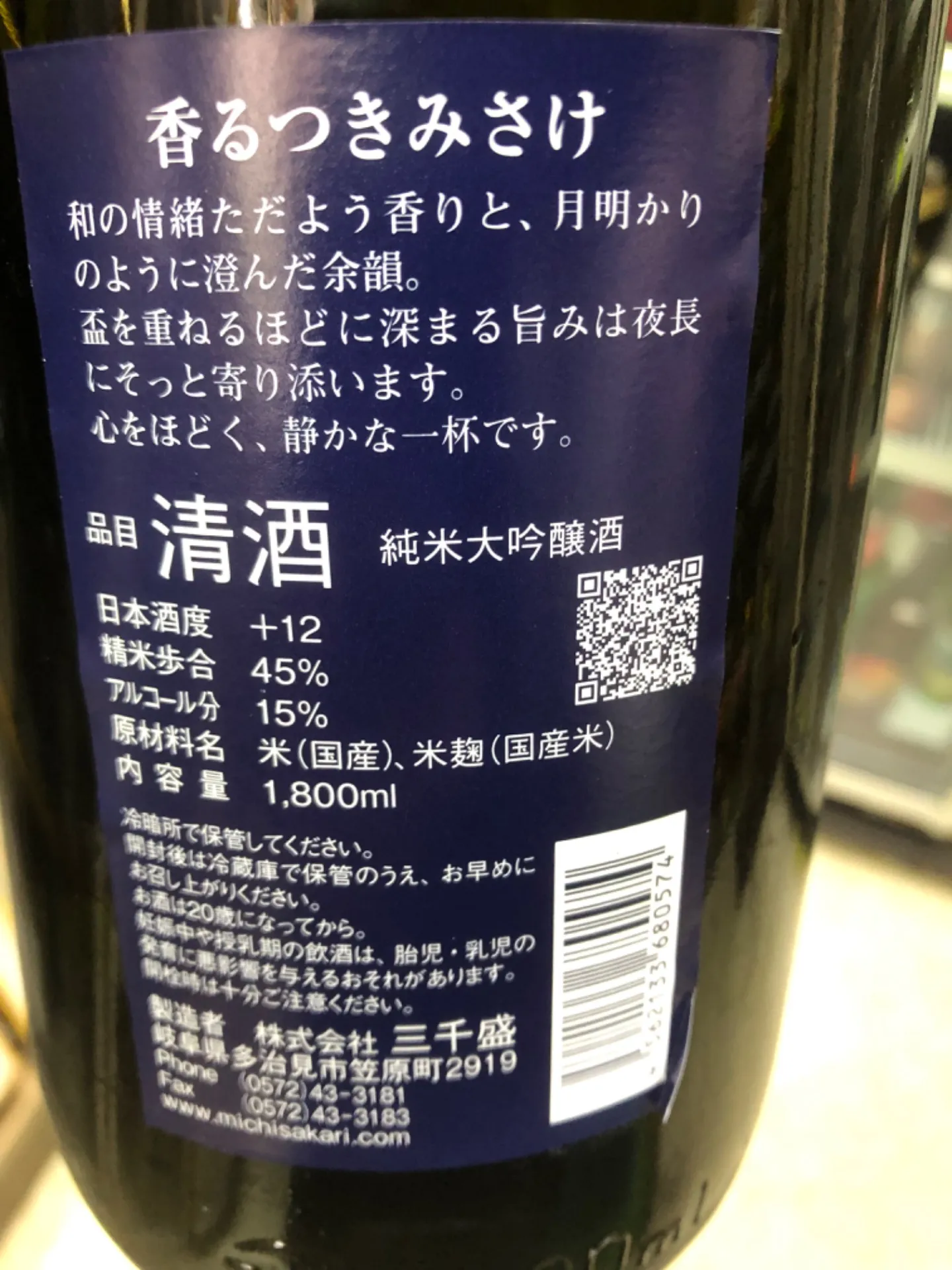 岐阜県(株)三千盛 三千盛 香るつきみさけ 純米大吟醸 辛口 1800ml