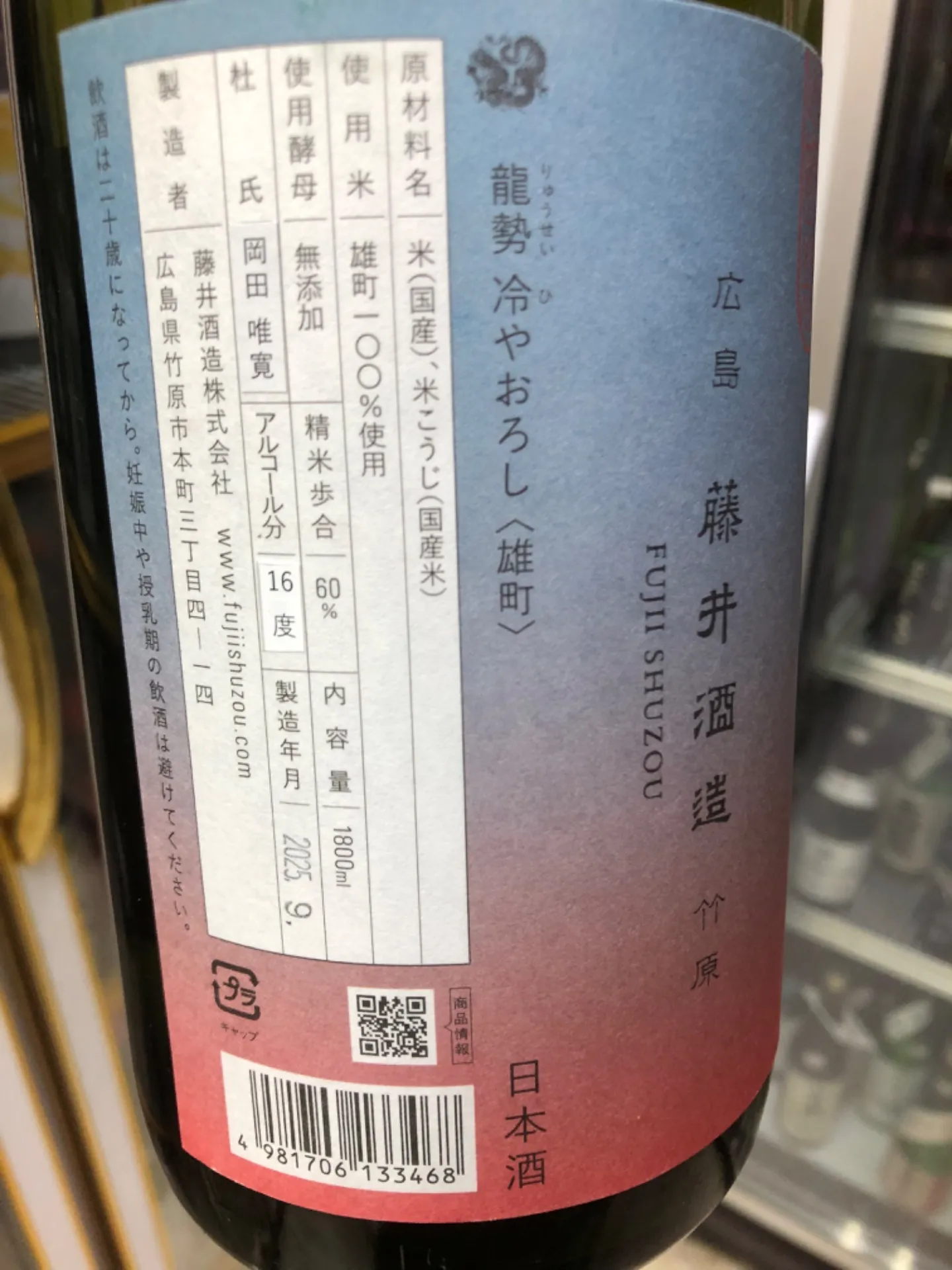 広島県 藤井酒造 龍勢 冷やおろし 生酛 雄町 1800ml