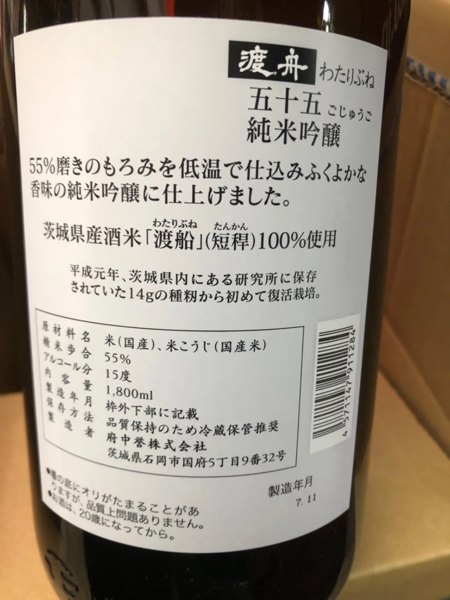 茨城県 府中誉(株)渡舟 純米吟醸 五十五 1800ml