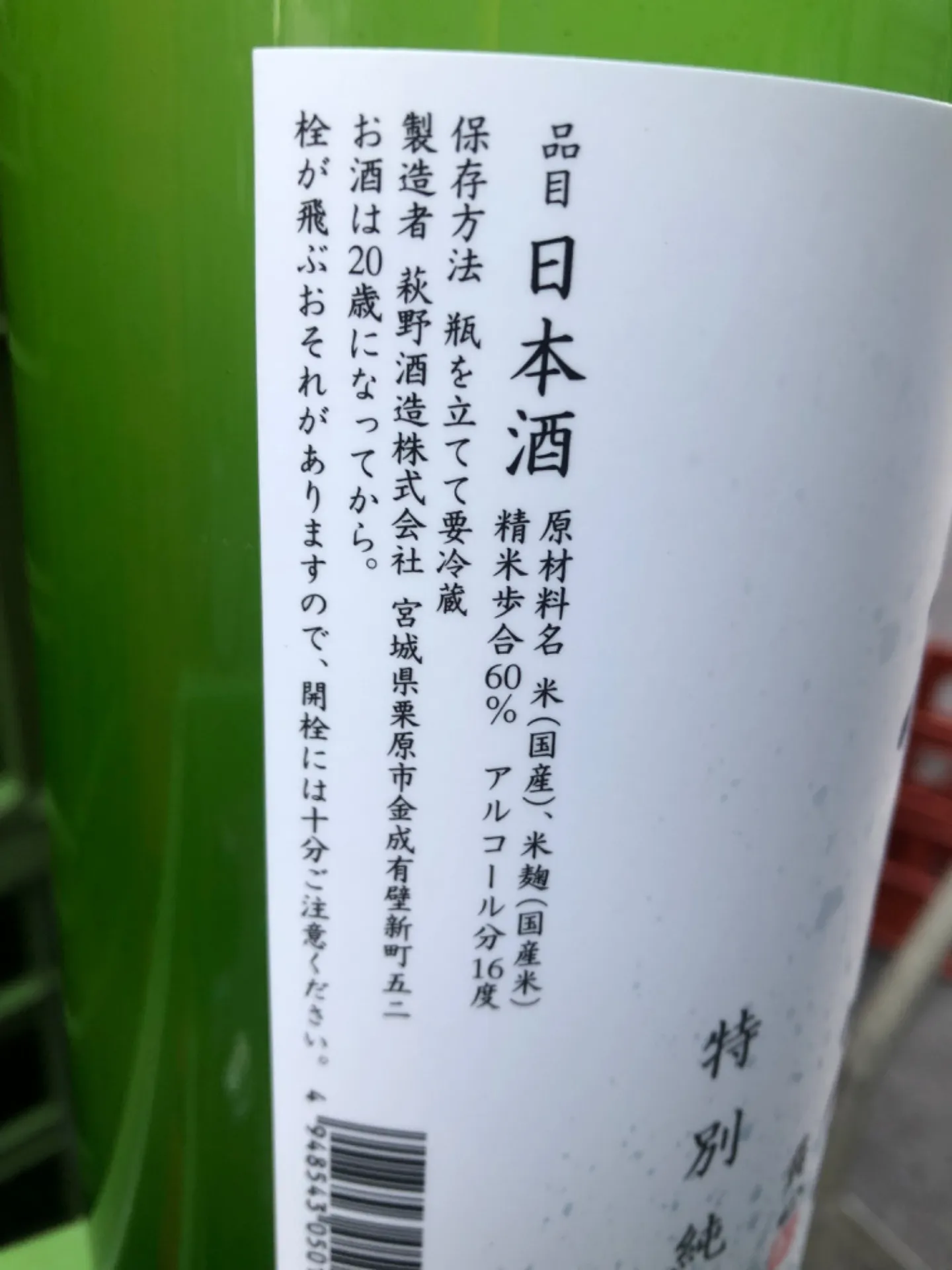 宮城県 萩野酒造 萩の鶴 しぼりたて 特別純米 無濾過生原酒 1800ml