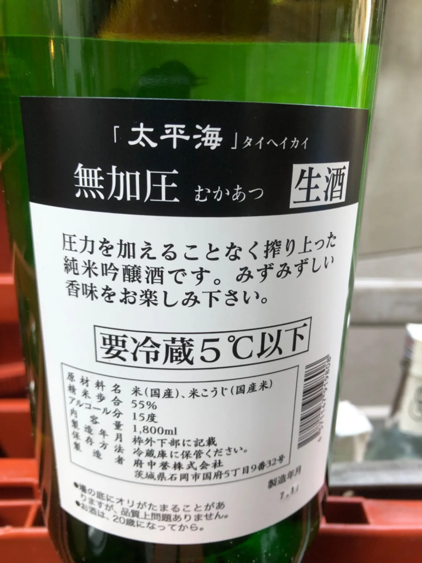茨城県 府中誉(株)太平海 無加圧 純米吟醸 生酒一切火入れせず 1800ml