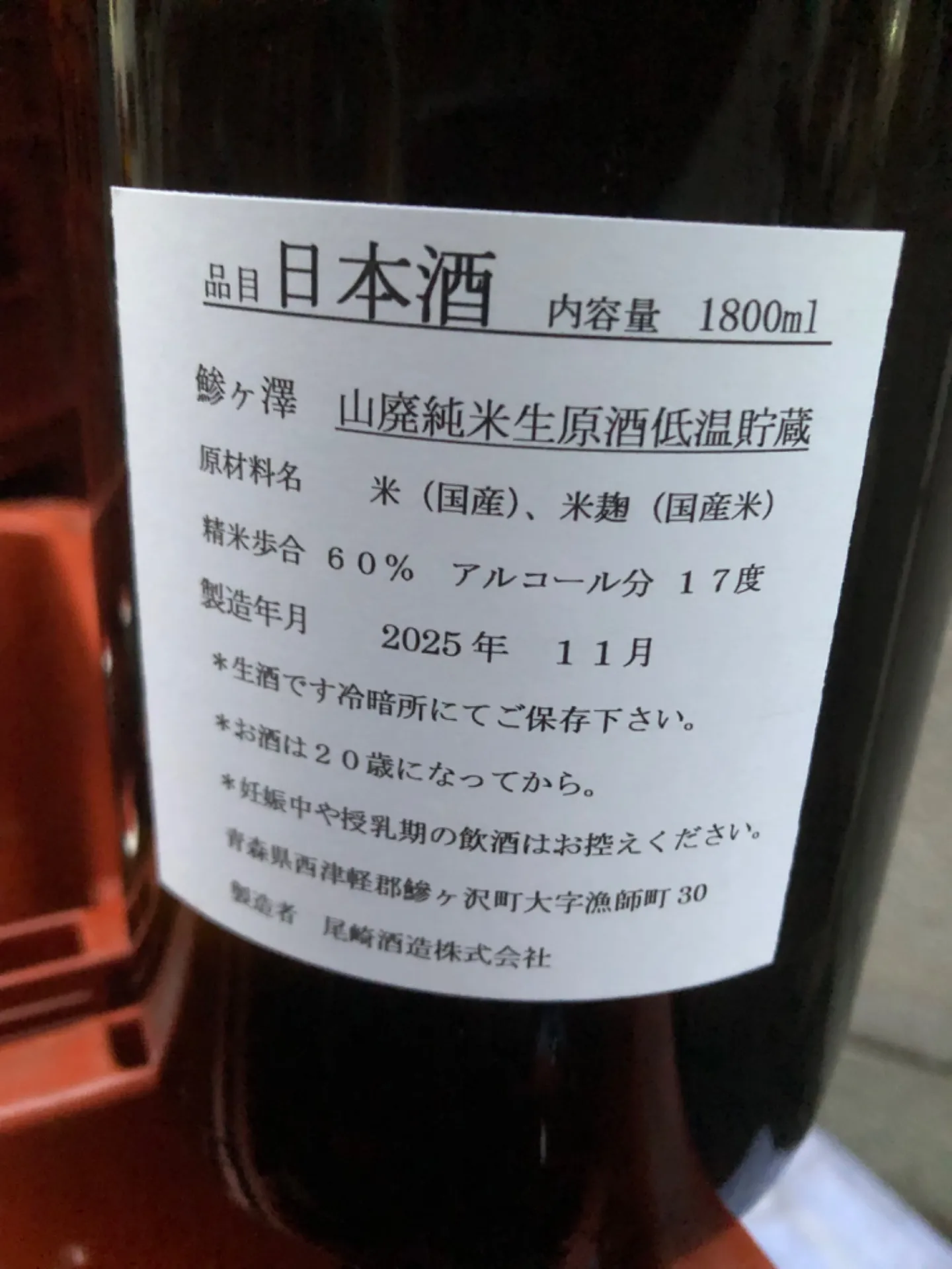 青森県 尾崎酒造 鰺ヶ澤 番外 山廃純米 無濾過生原酒 1800ml