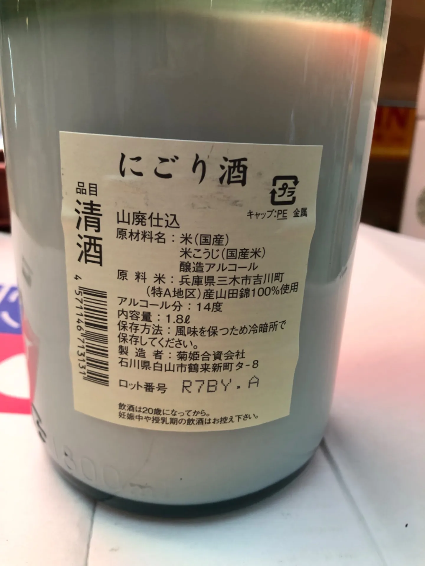 にごり酒というと、酸っぱいだけで薄っぺらい酒が多い中この菊姫のにごりは一味違う。米の繊細なタッチとチャーミングな甘さがクセになります。最高に美味しい♪