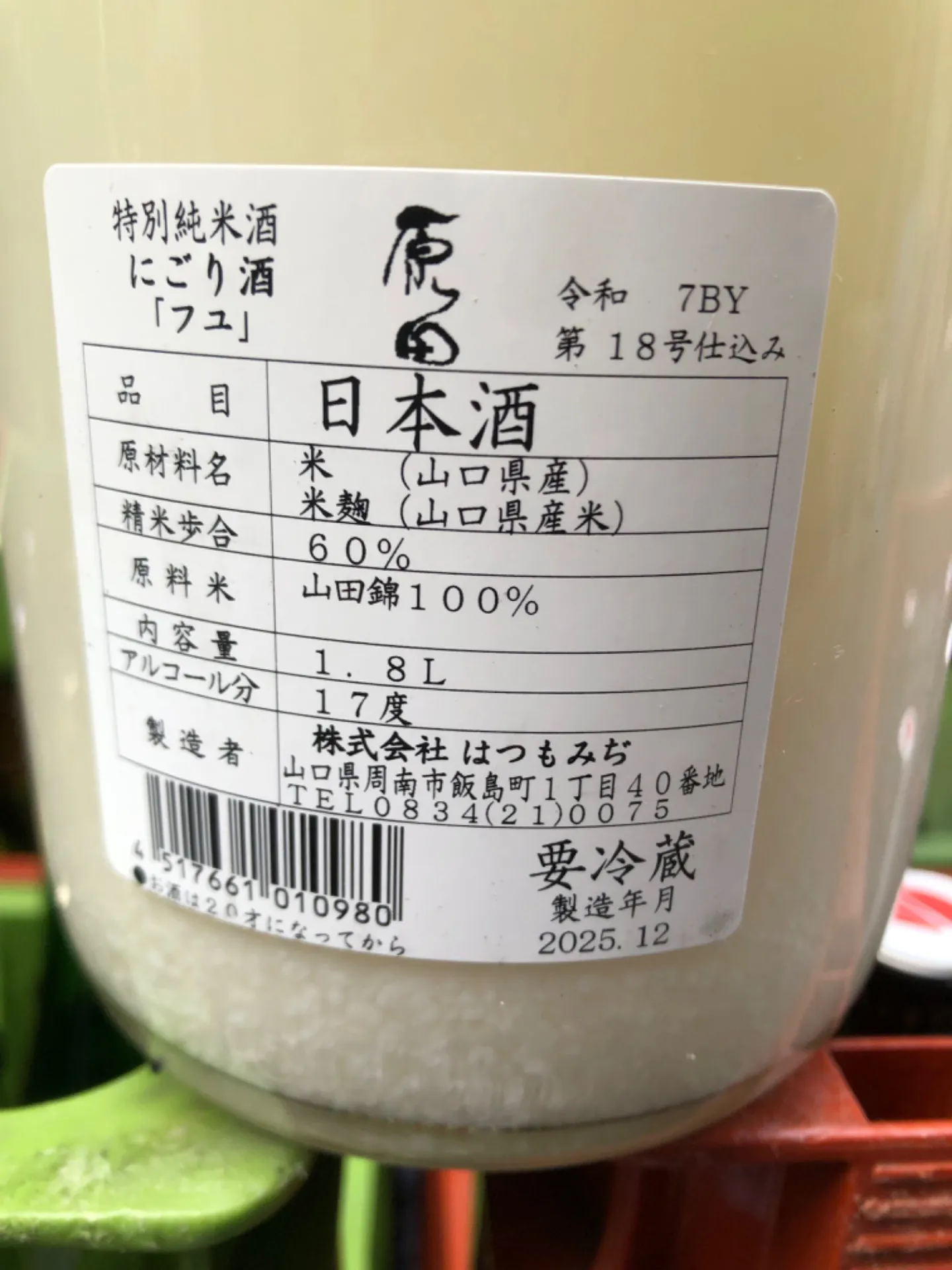 山口県 ( 株)はつもみぢ 原田フユ 特別純米 にごり酒 1800ml