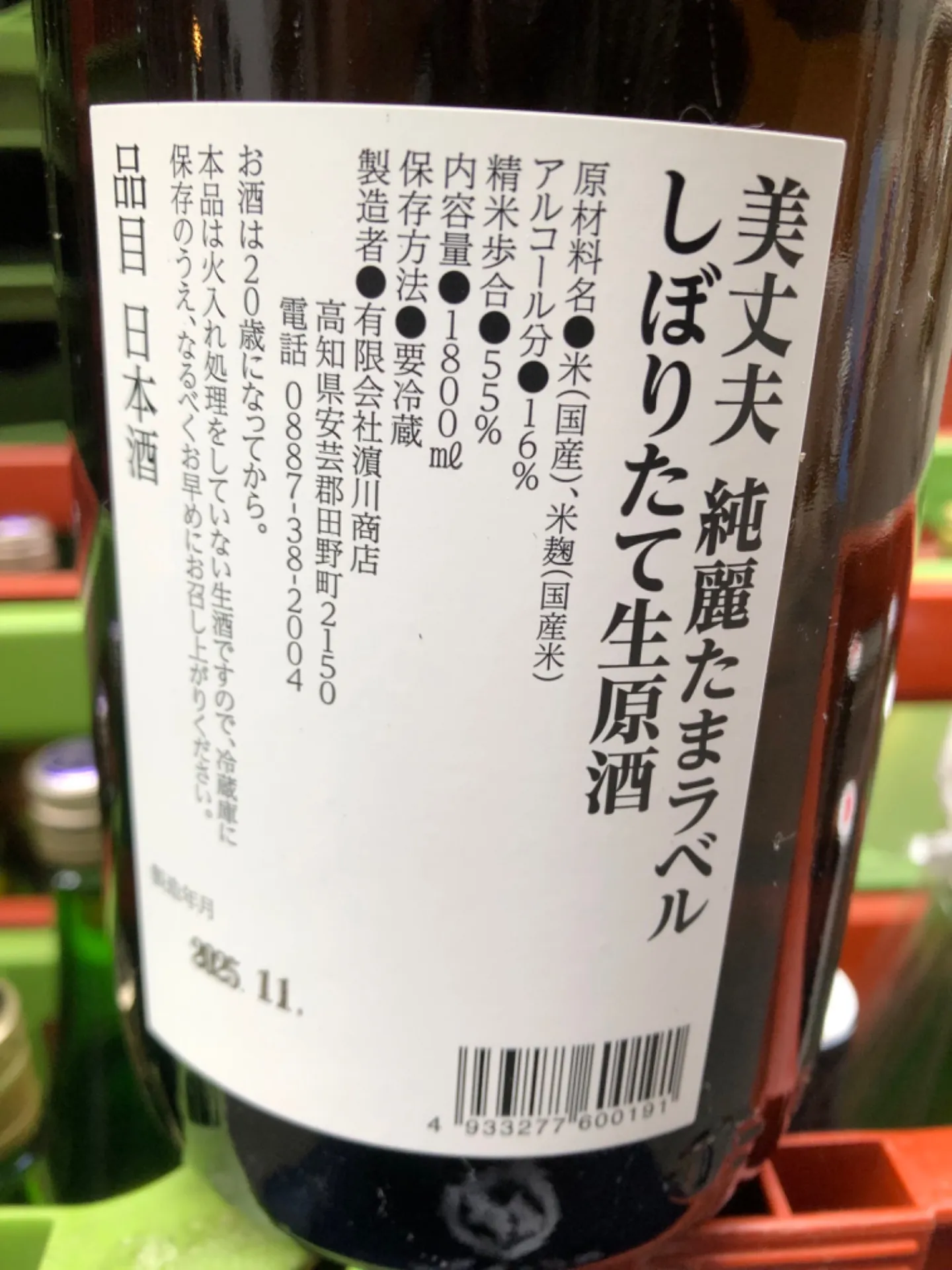 高知県 濱川商店 美丈夫 純米吟醸 純麗たまラベル しぼりたて生原酒 数量限定 1800ml