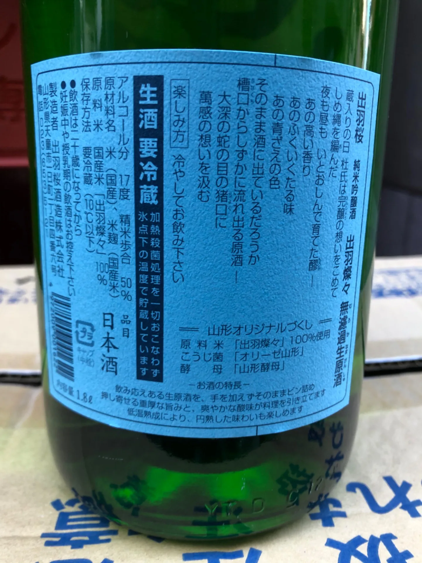 山形県 出羽桜酒造 出羽桜 純米吟醸 無濾過生原酒 出羽燦々誕生記念 1800ml