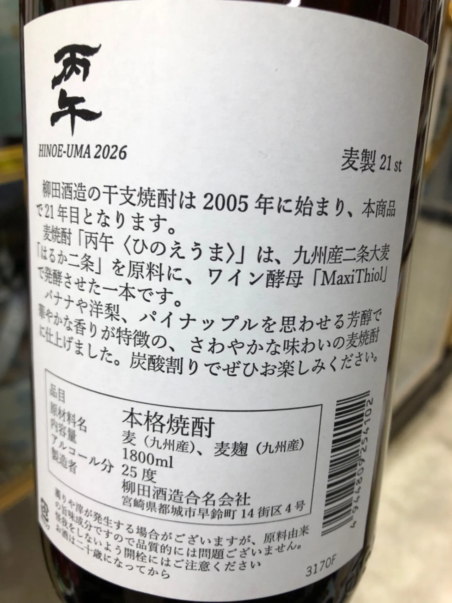 宮崎県 柳田酒造 駒 干支ラベル 麦焼酎 25度 1800ml