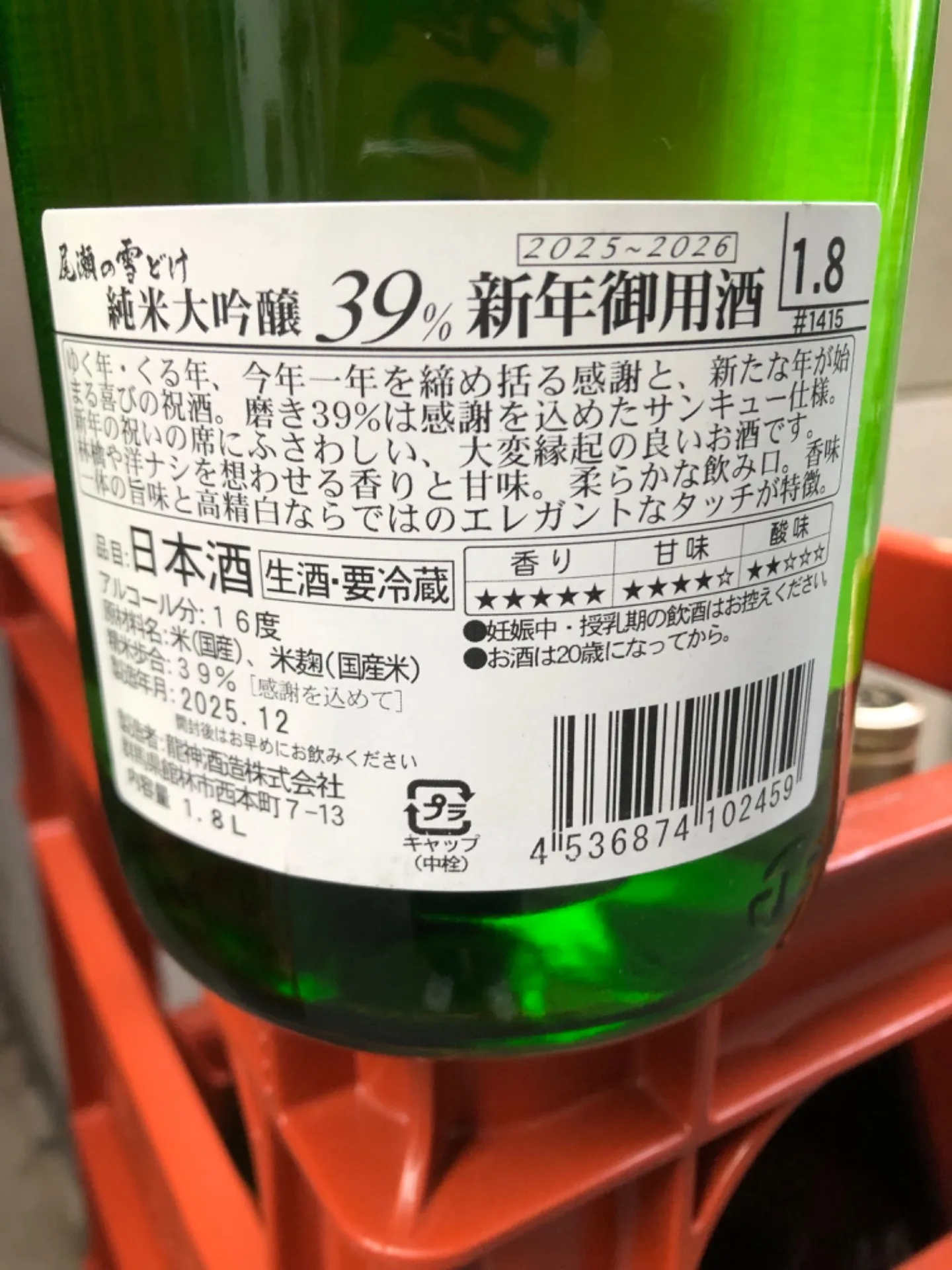 群馬県 龍神酒造 尾瀬の雪どけ 39% 新年御用酒 純米大吟醸 1800ml