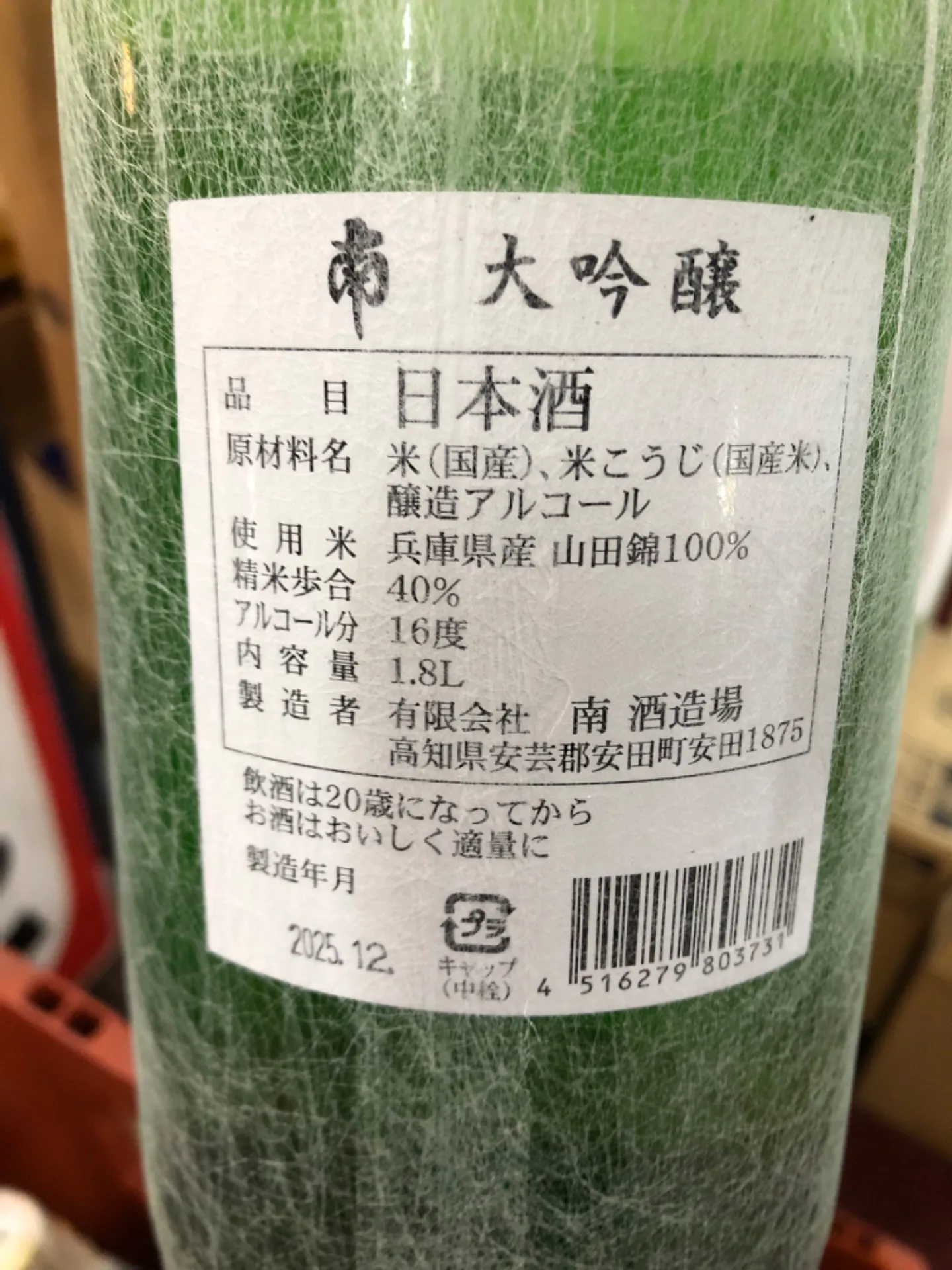高知県 南酒造場 南 大吟醸 播州山田錦 1800ml