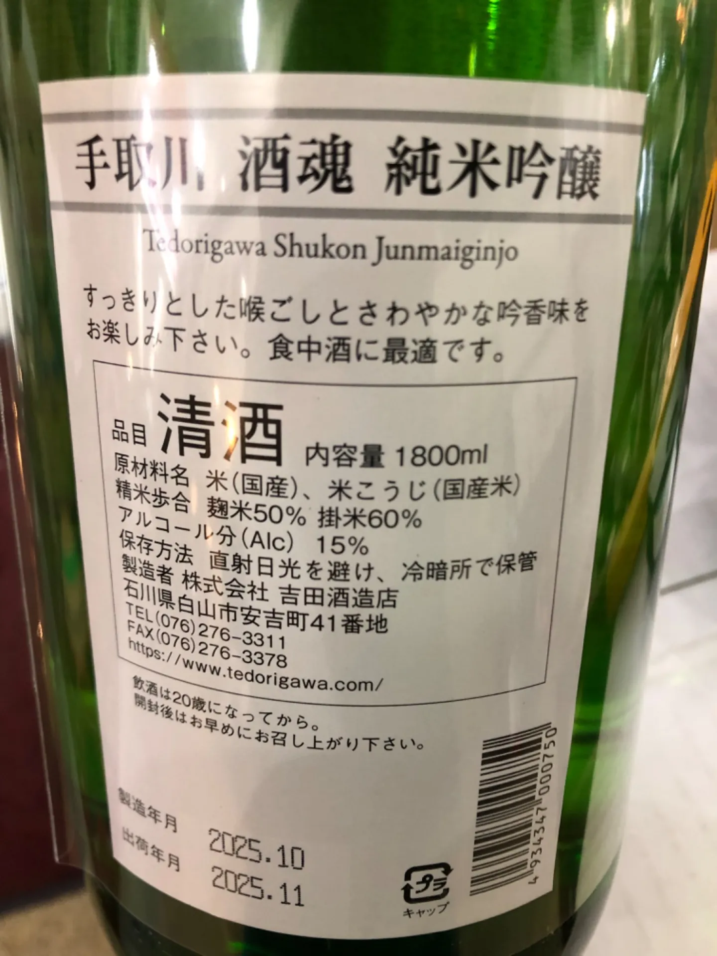 石川県 吉田酒造店 手取川 酒魂純米吟醸 1800ml