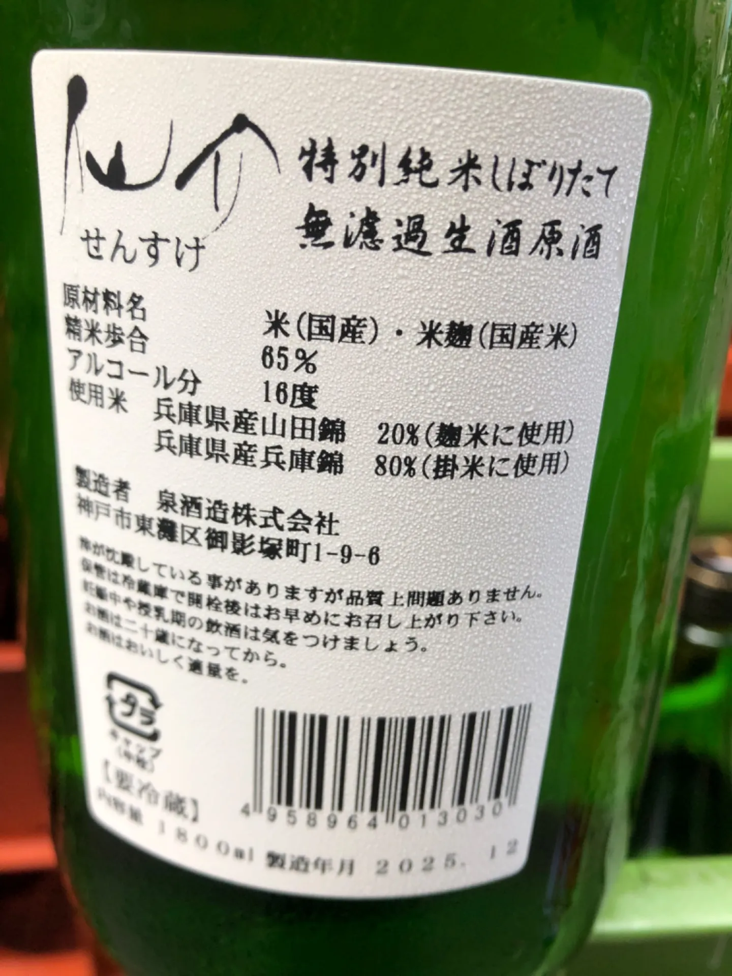 兵庫県 泉酒造 仙介 特別純米 しぼりたて 無濾過生原酒 1800ml