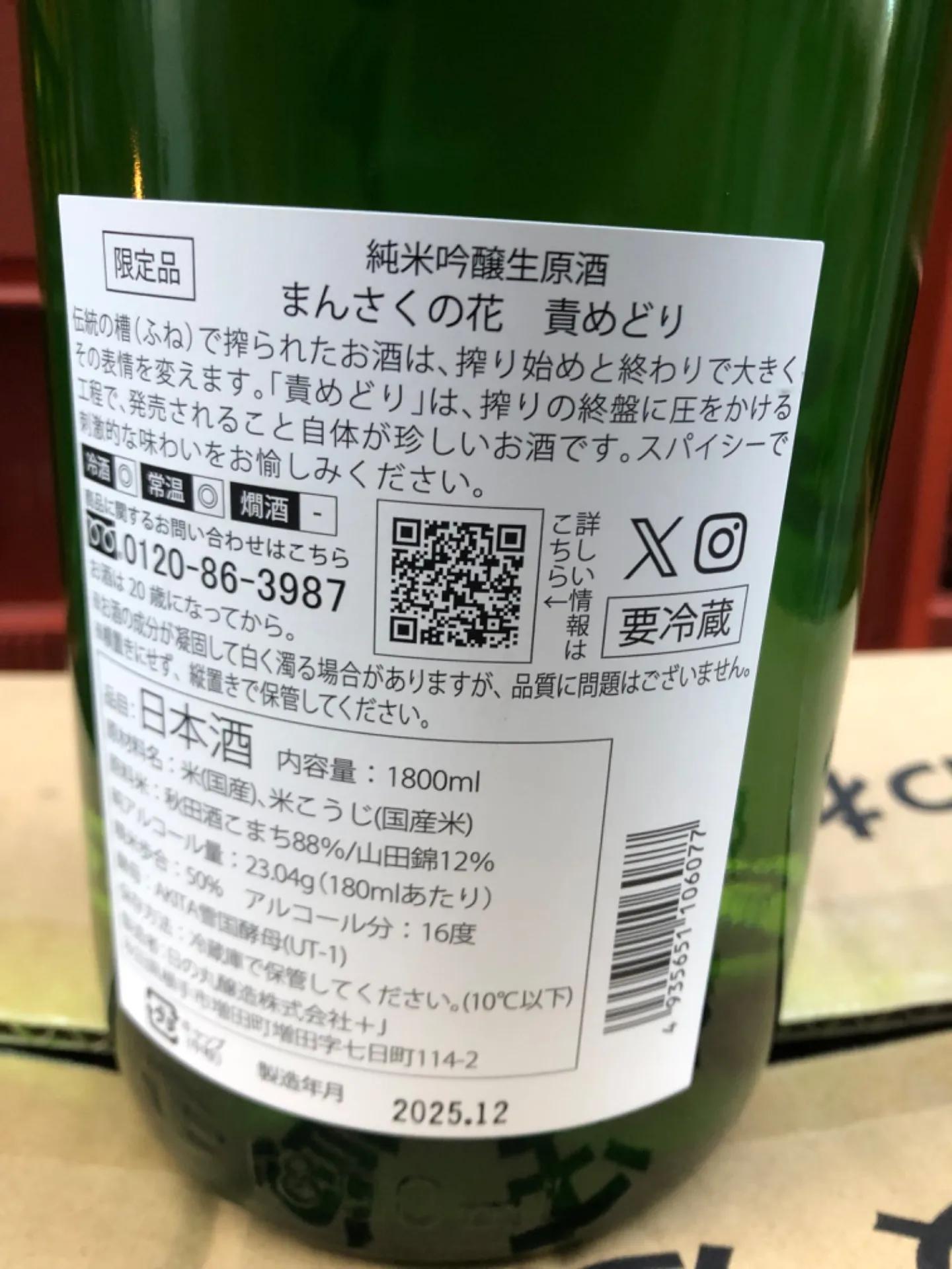 秋田県 日の丸醸造 まんさくの花 責めどり 純米吟醸生原酒 1800ml