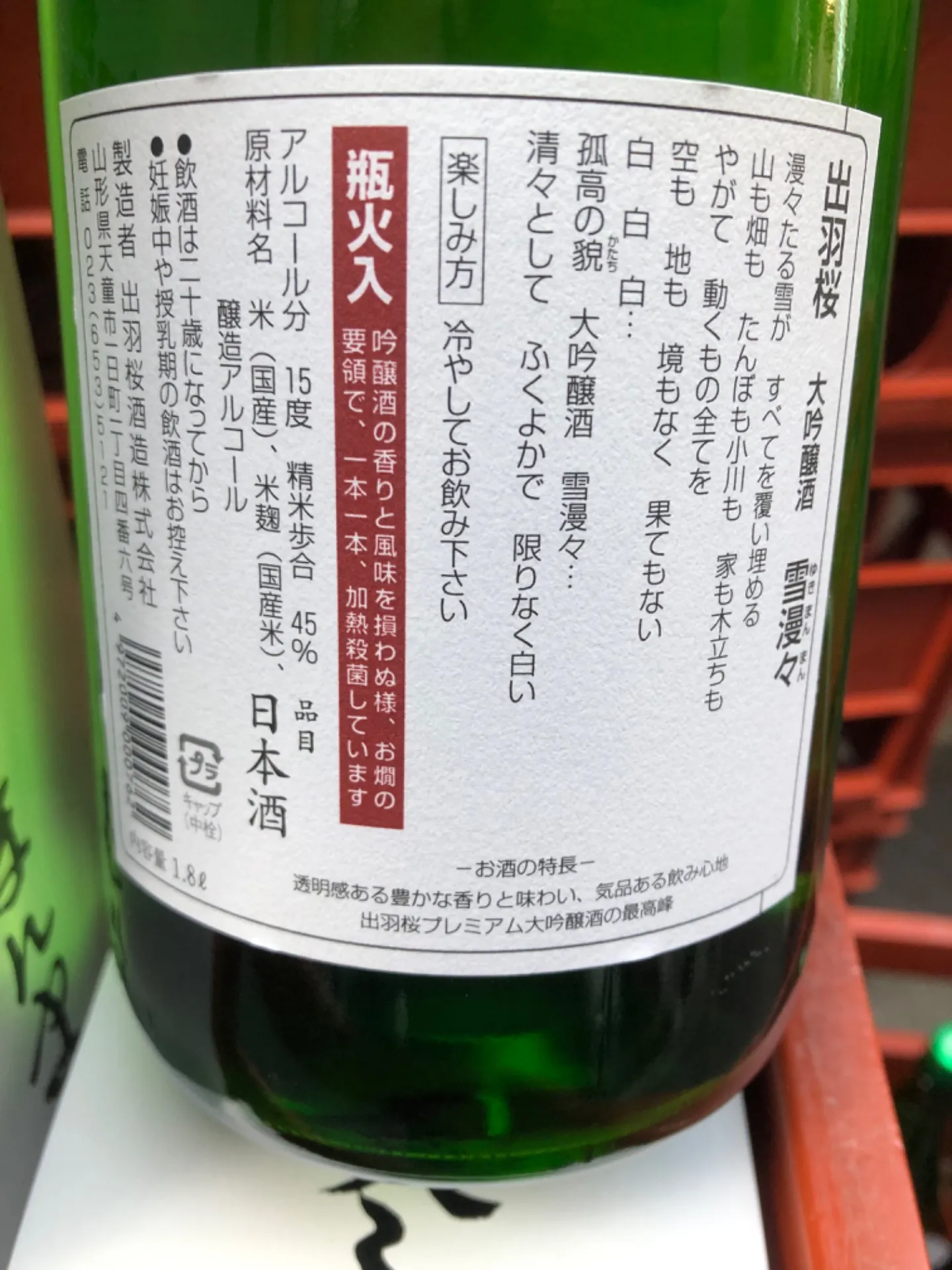 山形県 出羽桜酒造 出羽桜 雪漫々 大吟醸 瓶火入 1800ml