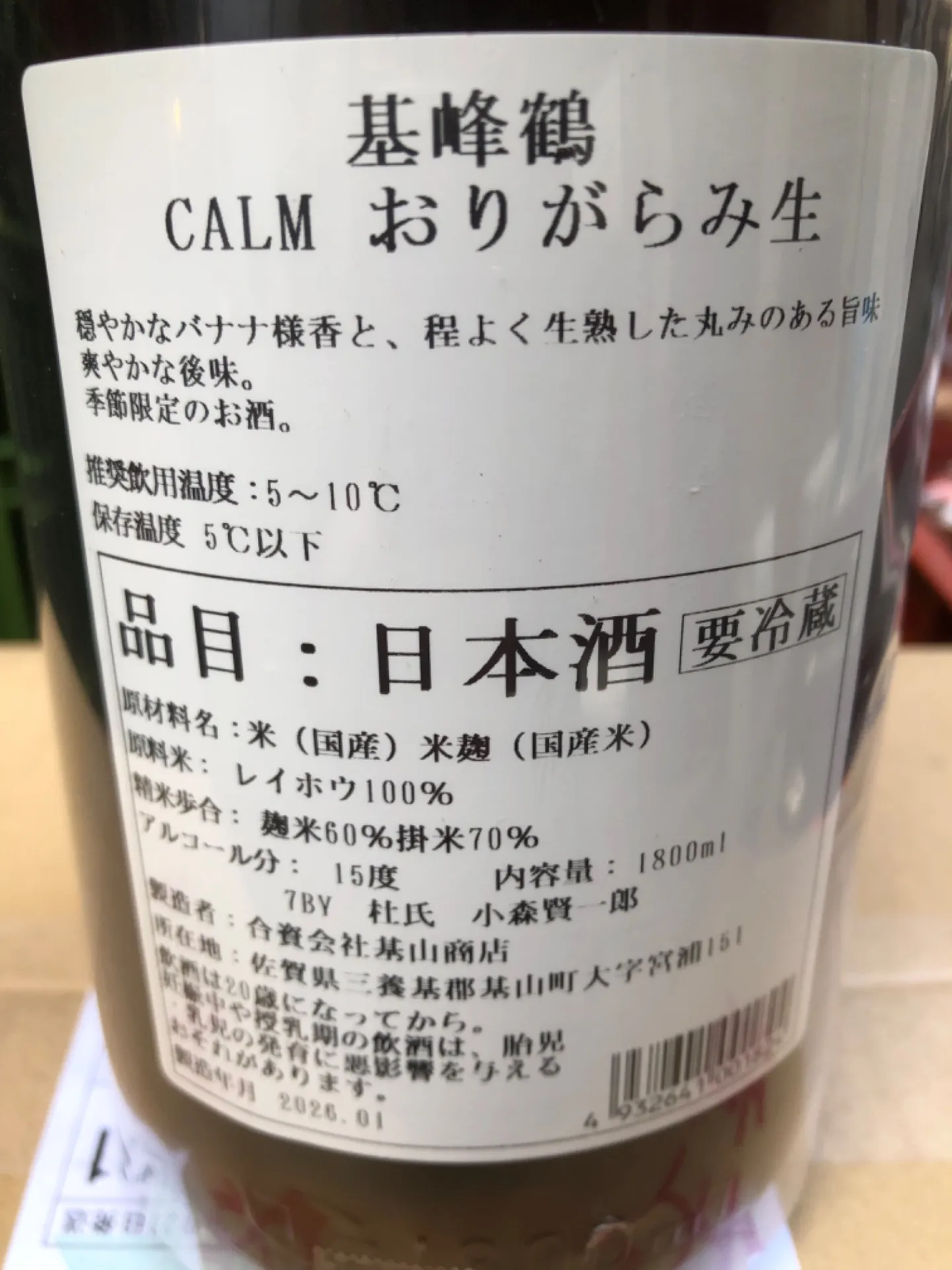 佐賀県(合)基山商店 基峰鶴 CALM おりがらみ生 1800ml