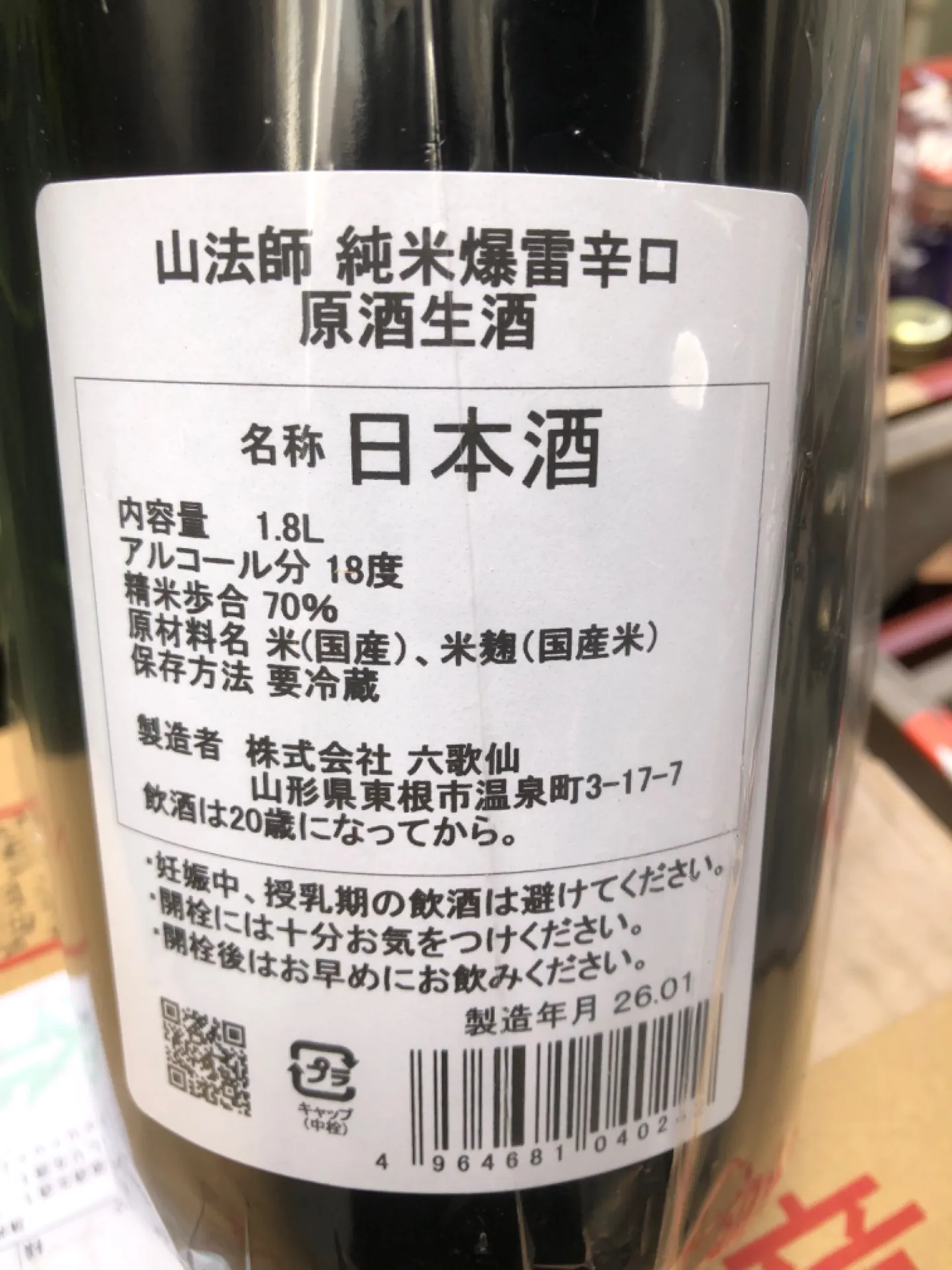 山形県 (株)六歌仙 山法師 純米爆雷+28 1800ml