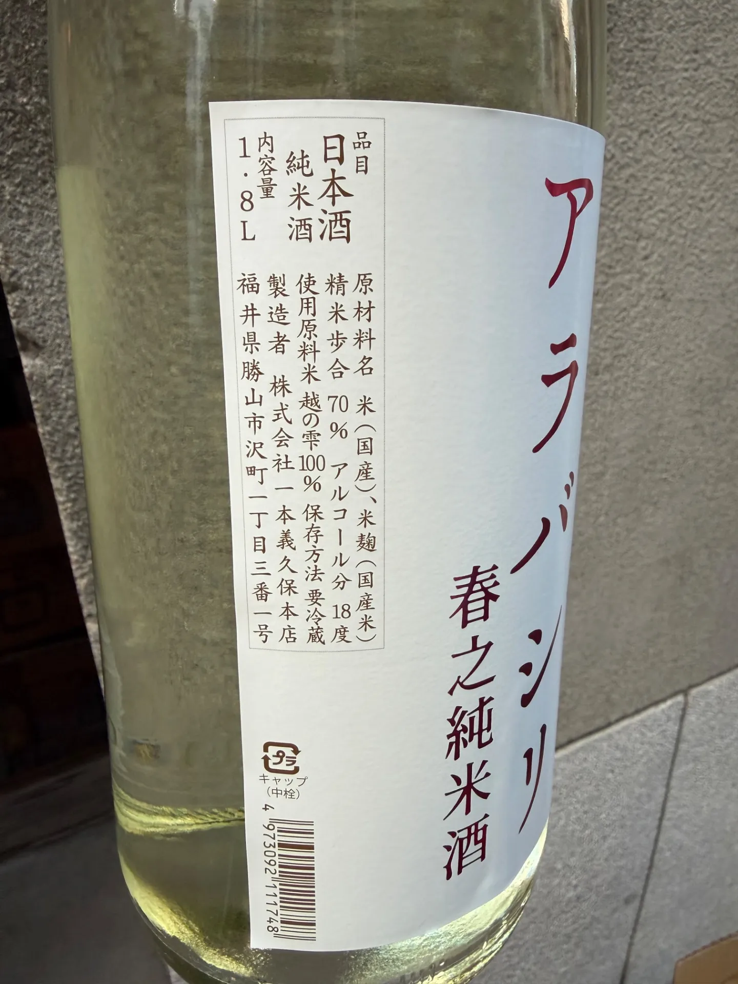 福井県 一本義久保本店酒 一本義 アラバシリ 春之純米 無濾過生酒 1800ml