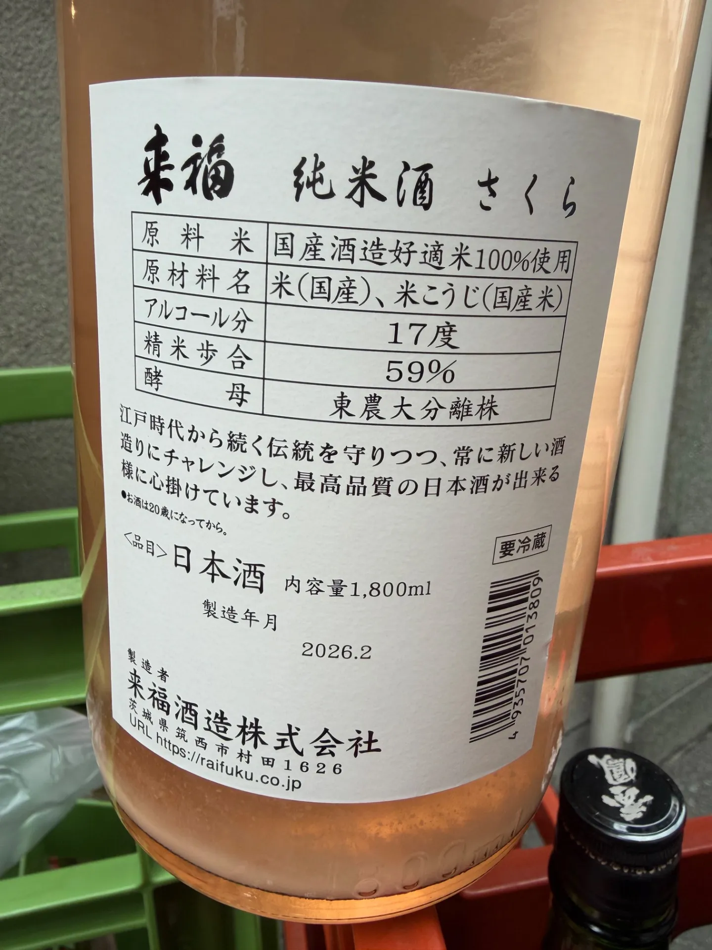 茨城県 来福酒造 来福 さくら純米 生酒 さくら酵母使用 1800ml