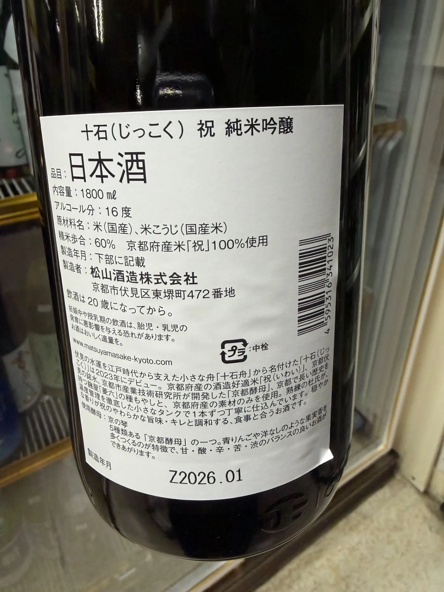 京都府 松山酒造 十石 祝 純米吟醸 1800ml