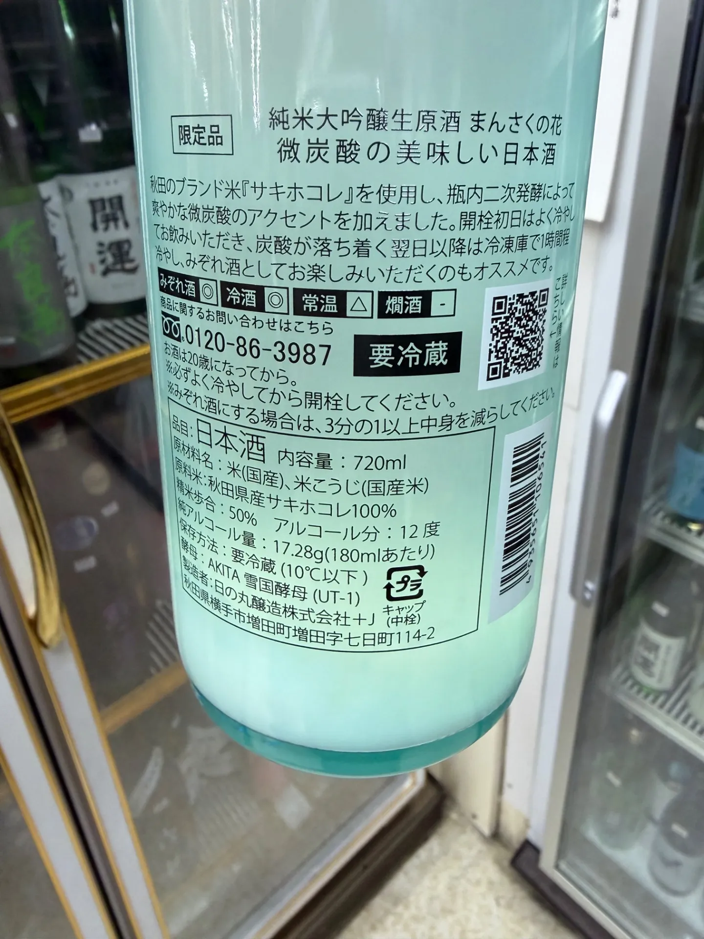 秋田県 日の丸醸造 まんさくの花 微炭酸の美味しい日本酒 純米大吟醸 生原酒 720ml