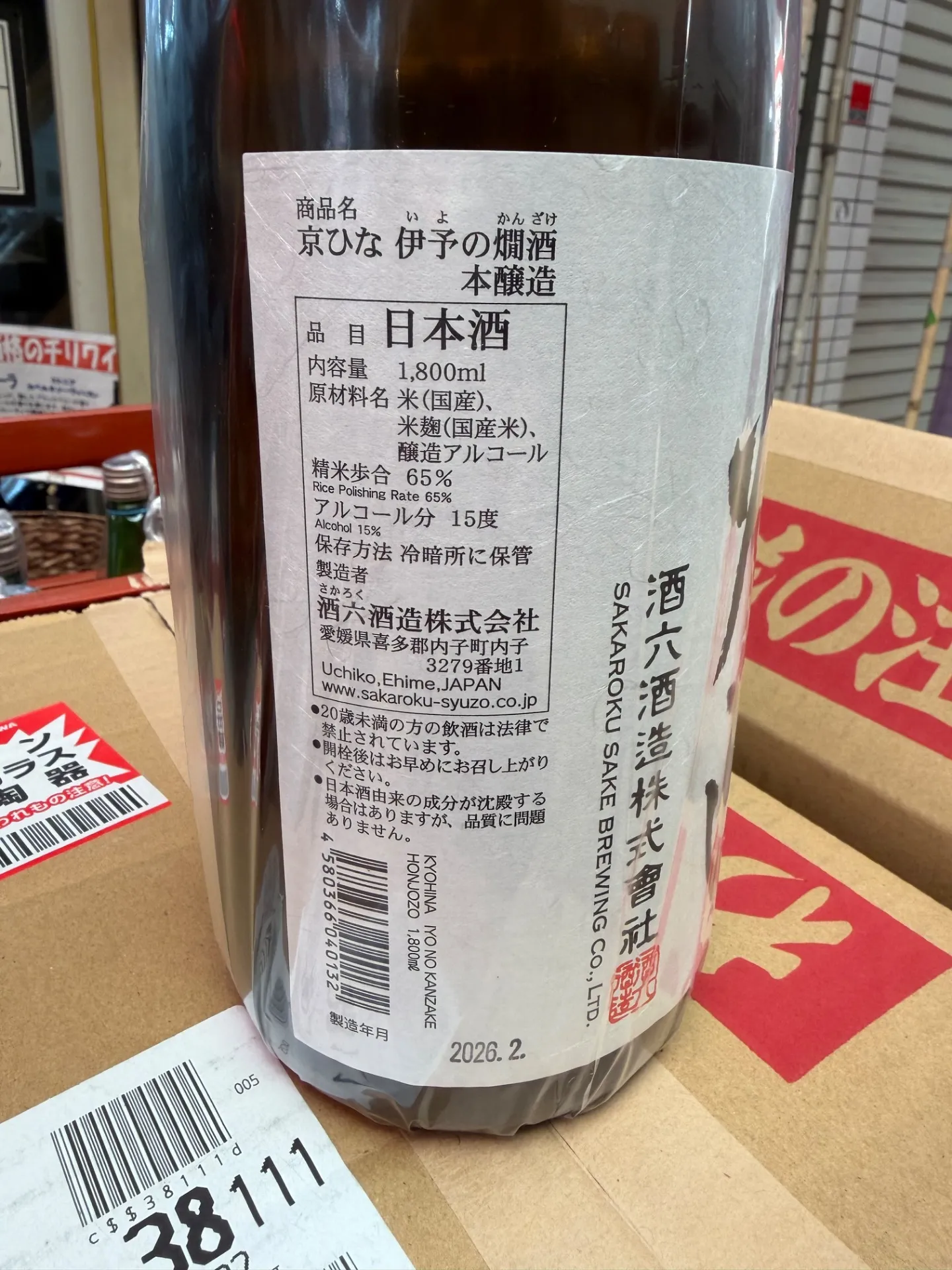 愛媛県 酒六酒造 京ひな 伊予の燗酒 本醸造 1800ml