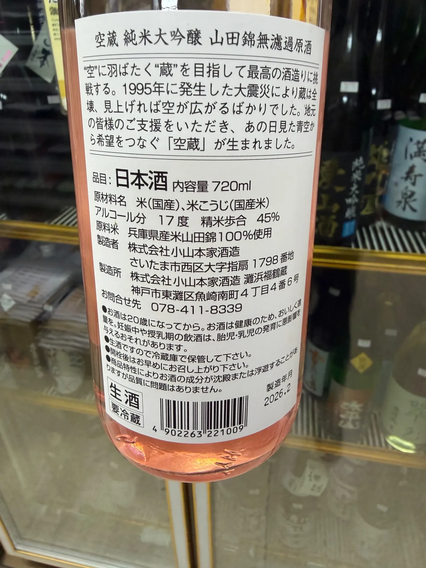 兵庫県 小山本家酒造 灘浜福鶴蔵 空蔵 純米大吟醸 無濾過生酒 山田錦 100%使用 春限定品 720ml