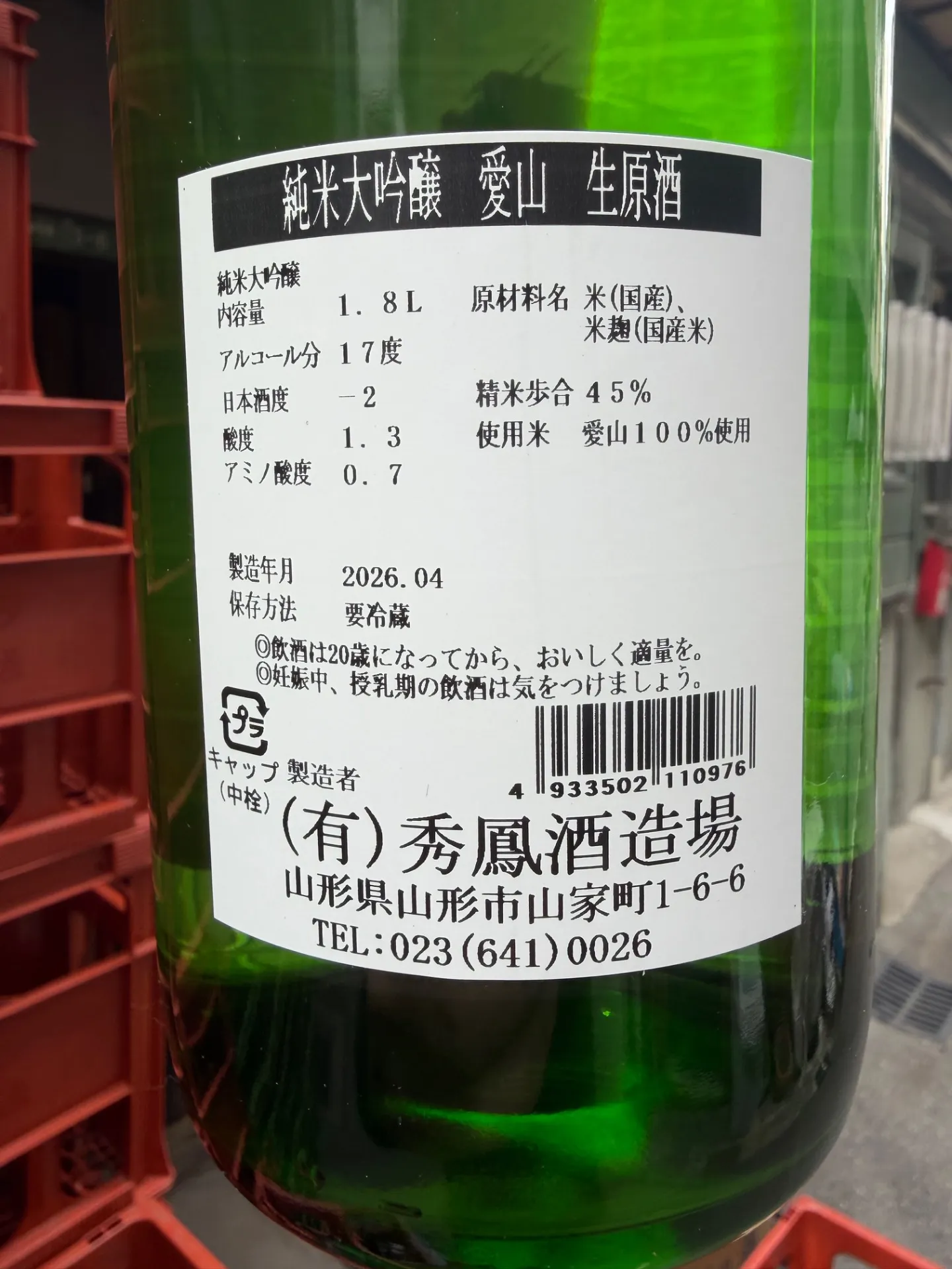 山形県 秀鳳酒造 秀鳳 純米大吟醸 愛山 生原酒 1800ml